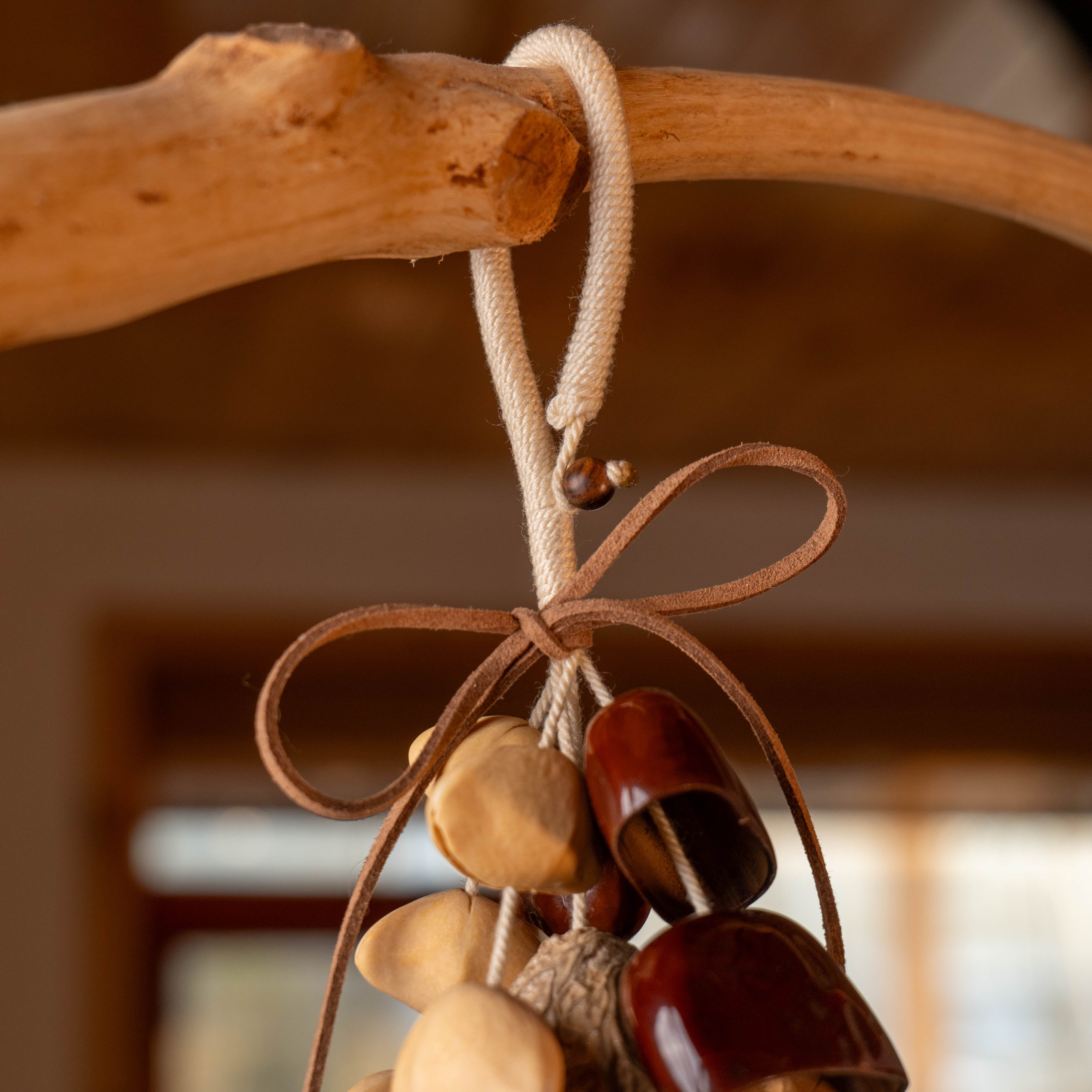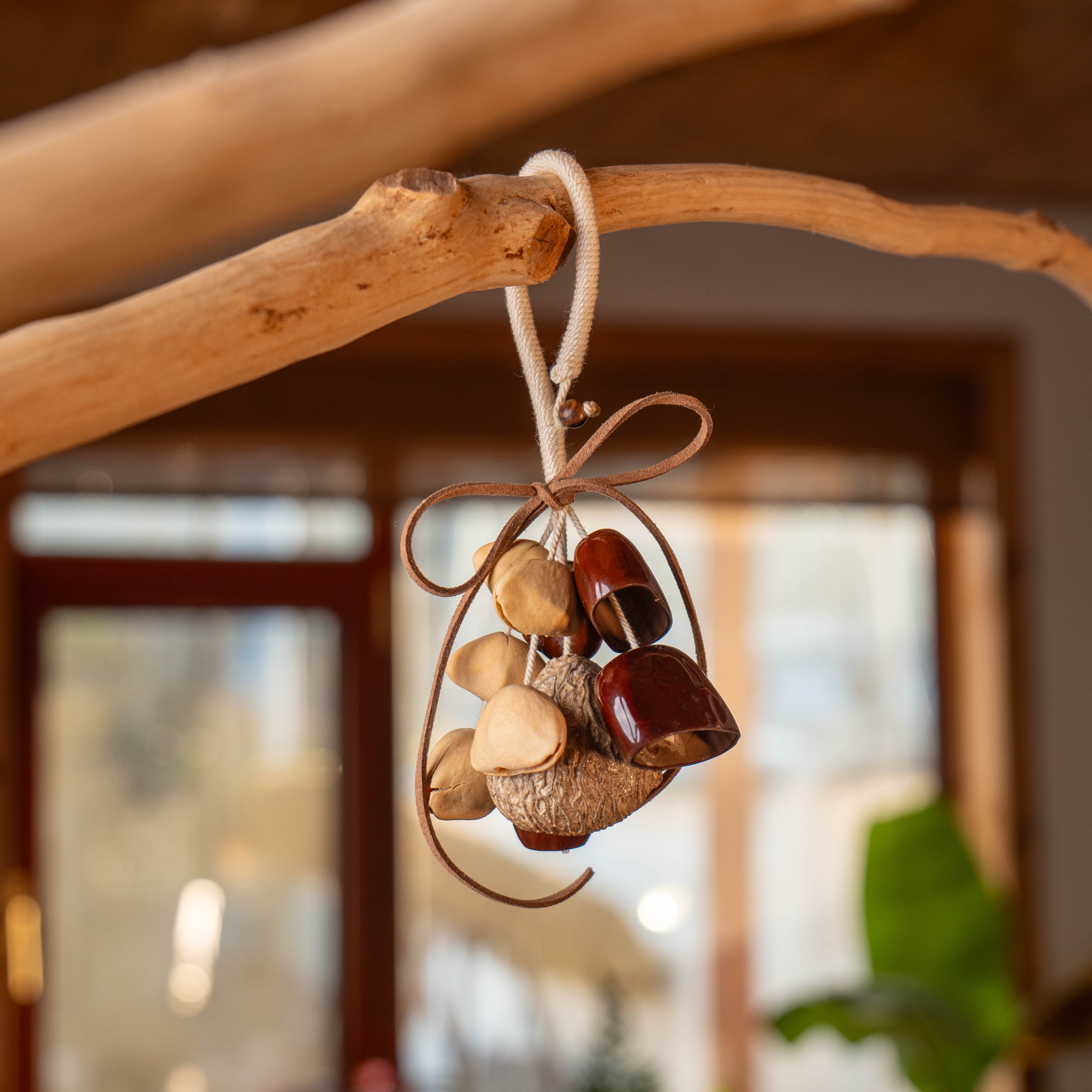 This handcrafted seed pod chime is woven from natural botanicals — each piece one-of-a-kind, producing soft, soothing tones as the breeze passes through.